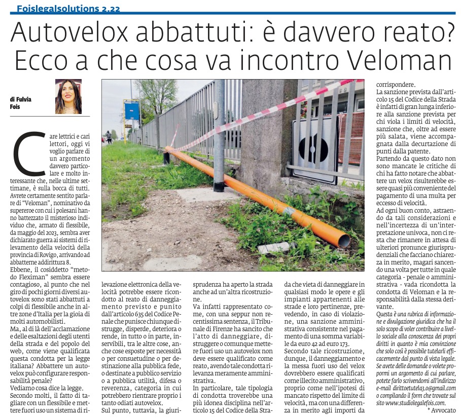 Autovelox abbattuti: è davvero reato? Ecco a che cosa va incontro Veloman