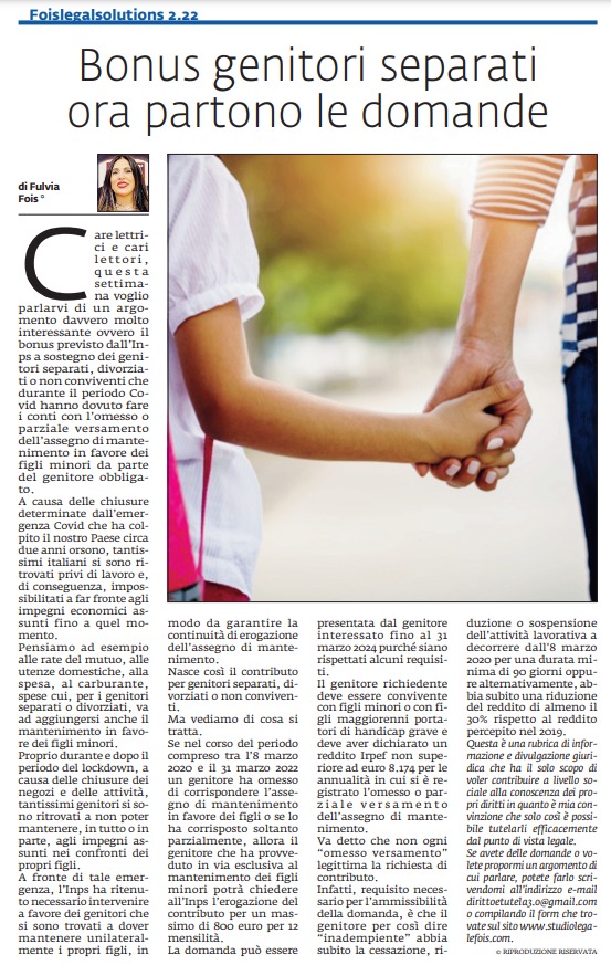Bonus genitori separati ora partono le domande