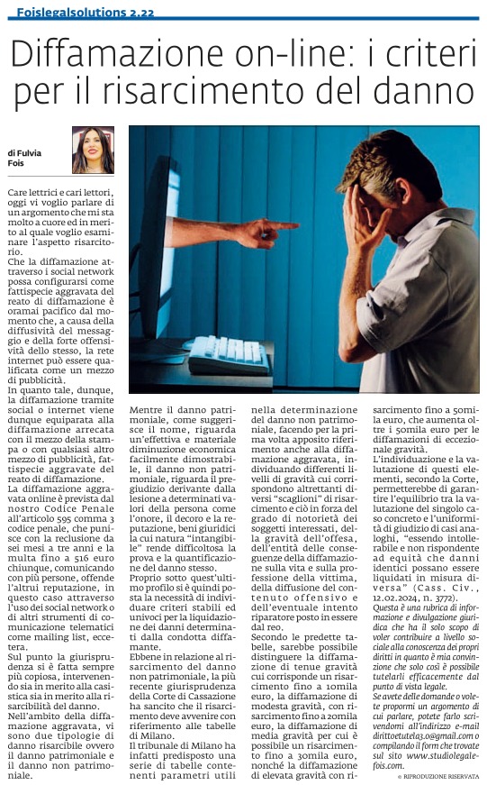 Diffamazione on-line: i criteri per il risarcimento del danno