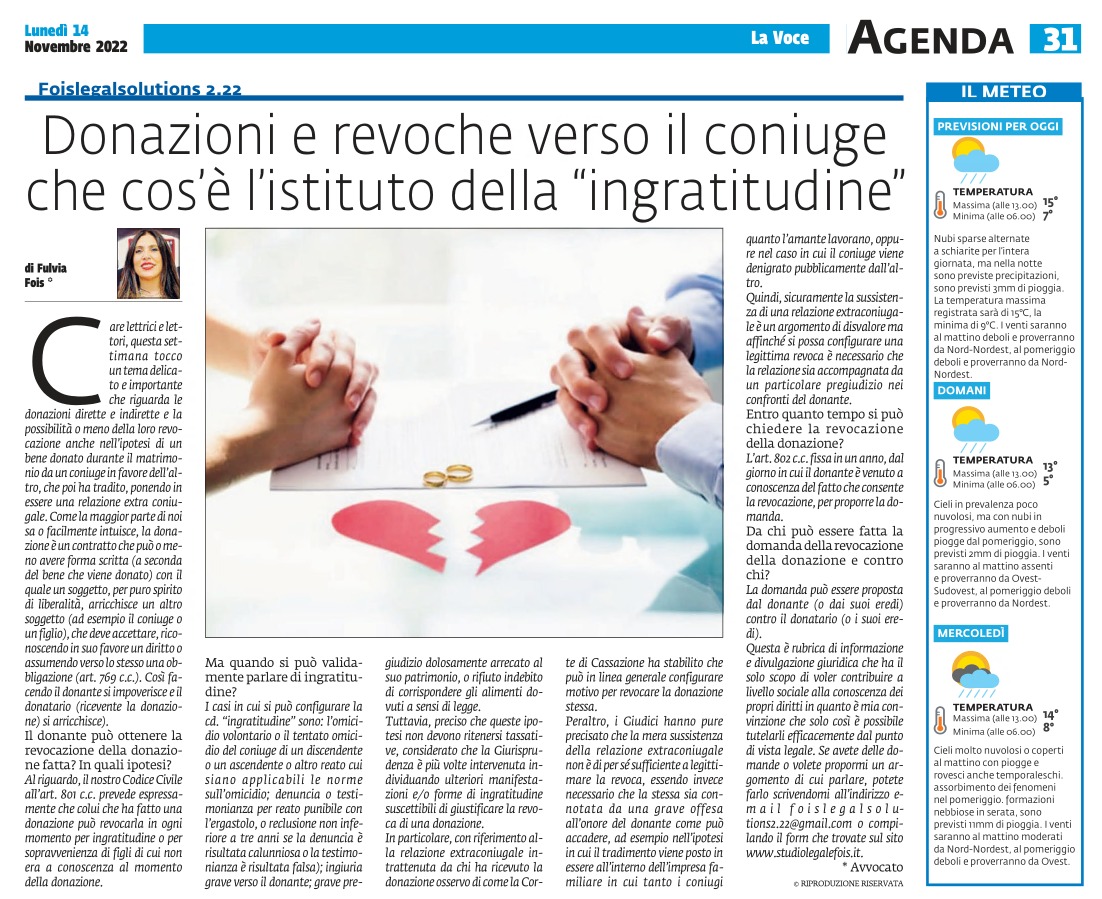 Donazioni e revoche verso il coniuge che cos'è l'istituto della "ingratitudine"