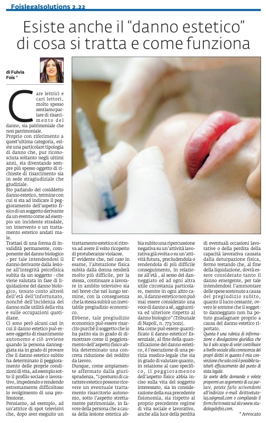 Esiste anche il "danno estetico" di cosa si tratta e come funziona