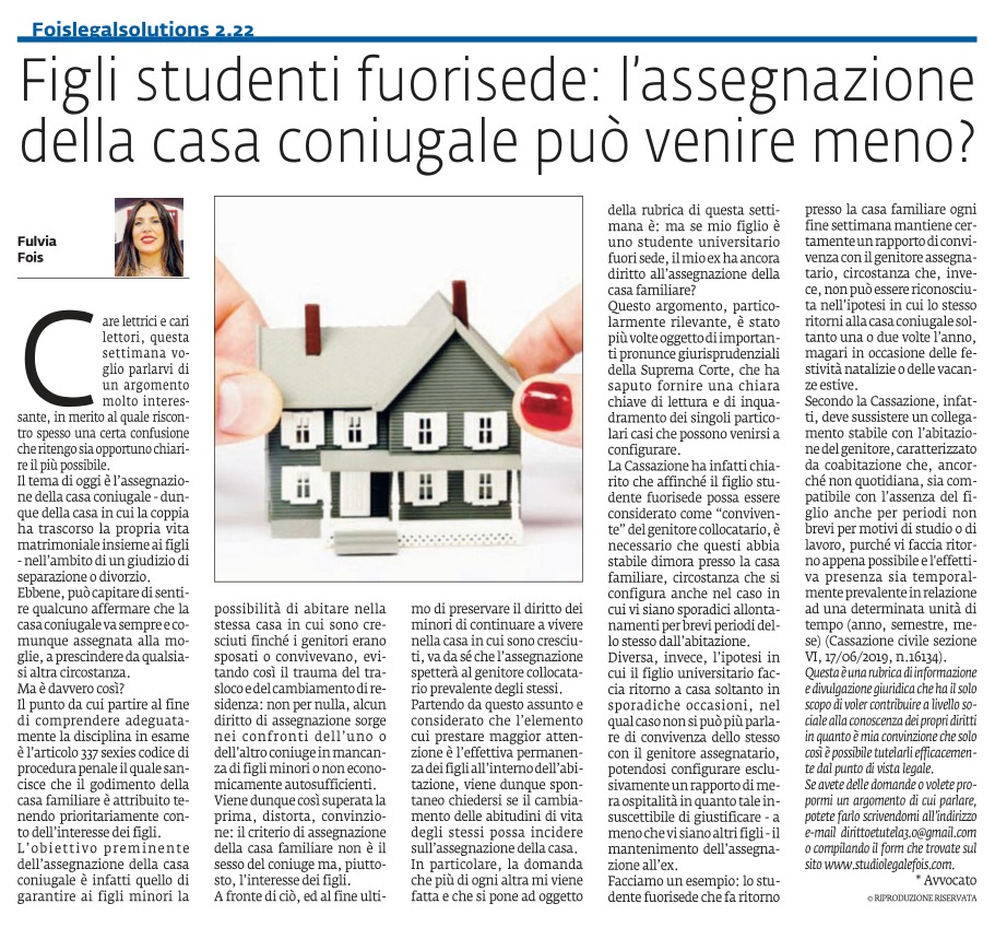 Figli studenti fuorisede: l'assegnazione della casa coniugale può venire meno?