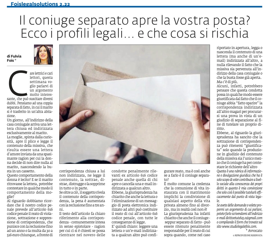 Il coniuge separato apre la vostra posta? Ecco i profili legali... e che cosa si rischia