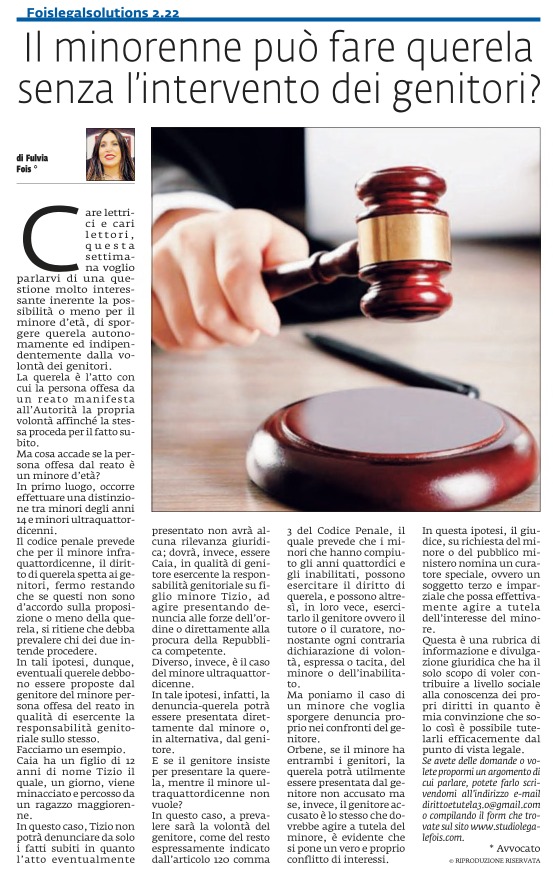 Il minorenne può fare querela senza l'intervento dei genitori?