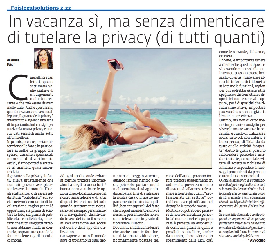 In vacanza sì, ma senza dimenticare di tutelare la privacy (di tutti quanti)