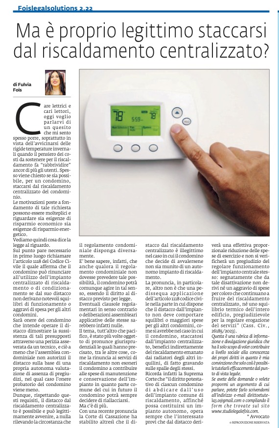 Ma è proprio legittimo staccarsi dal riscaldamento centralizzato?