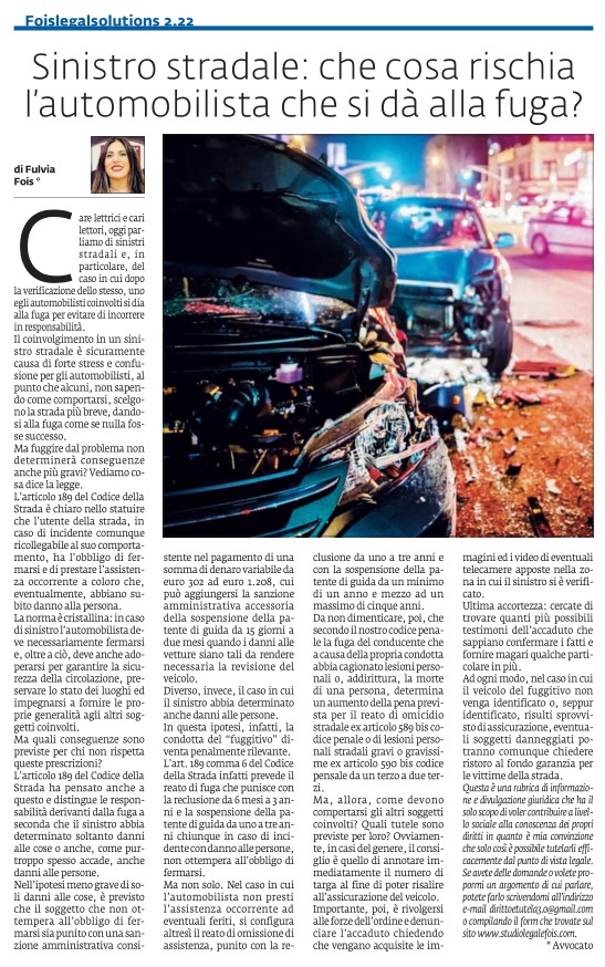 Sinistro stradale: che cosa rischia l'automobilista che si da alla fuga?