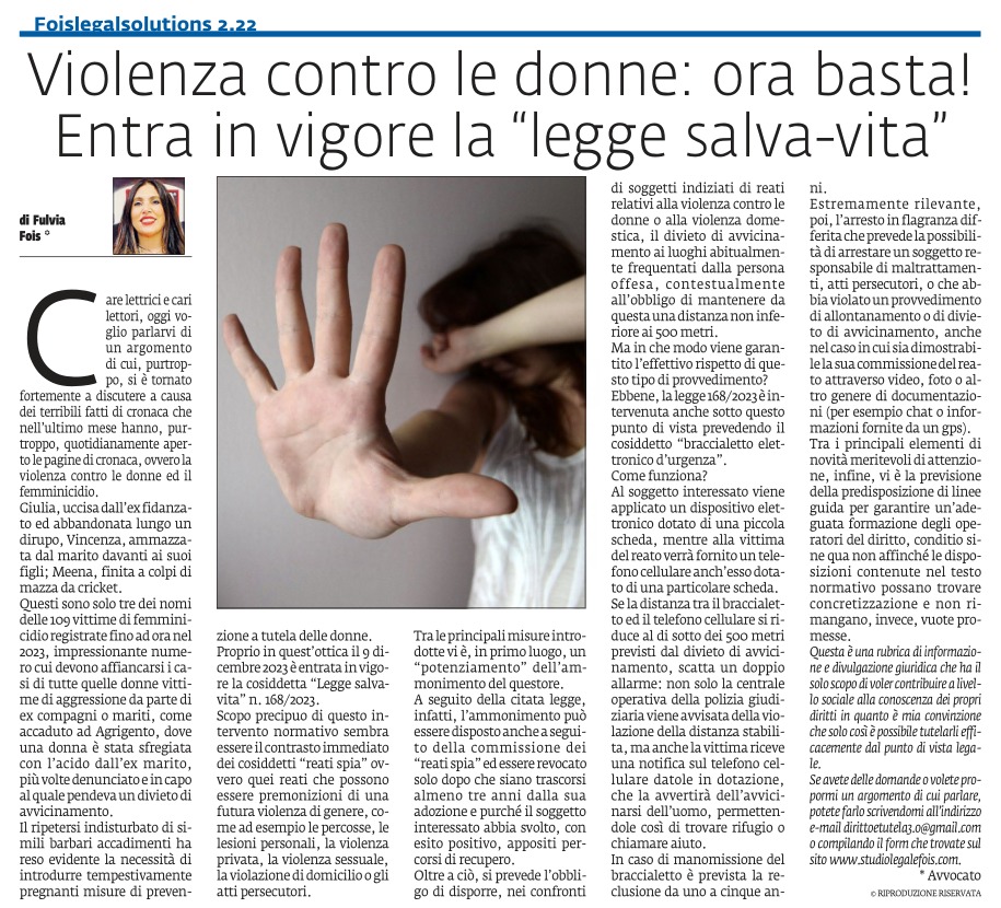 Violenza contro le donne: ora basta! Entra in vigore la "legge salva-vita"